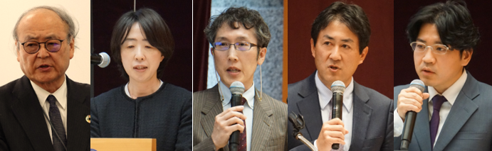 【(左)群馬大学 石崎学長、文部科学省 倉田課長、自治医科大学医学部 松村教授、群馬大学 大宅教授、国立精神・神経医療研究センター 小山部長】