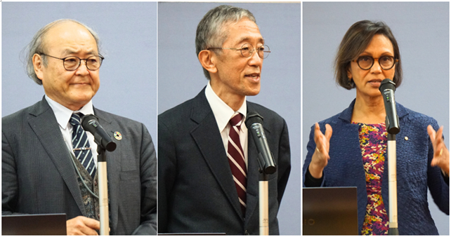 【(左から)群馬大学 石崎学長, 林特別教授, クイーンズランド大学 ミシュラ教授